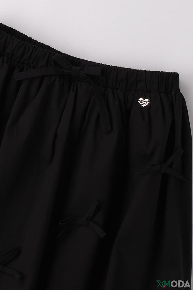 Юбка имеет классический чёрный цвет, который легко сочетается с любой одеждой. Эластичный пояс обеспечивает удобную посадку, а очаровательные бантики добавляют образу игривости и кокетства.