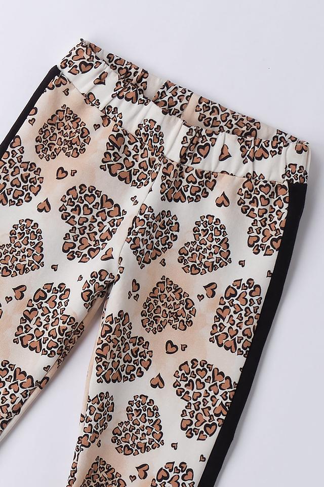 Джинсы Sarabanda для девочки, бежевого цвета, с оригинальным принтом в виде сердечек и леопарда. Модель выполнена из мягкого хлопка с добавлением эластана для комфорта и свободы движений. Состав: хлопок 95%, эластан 5%