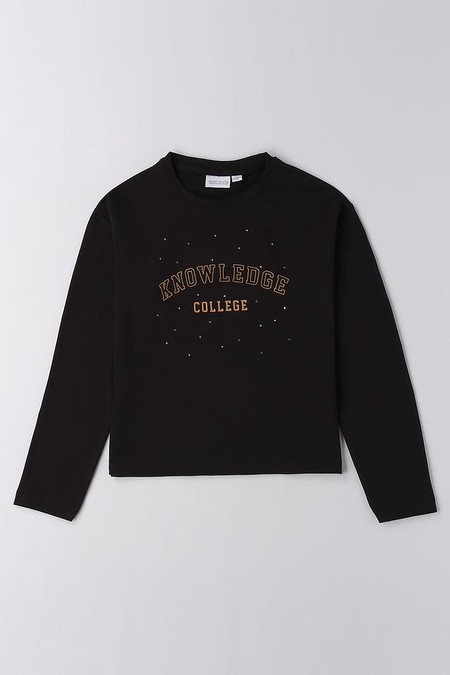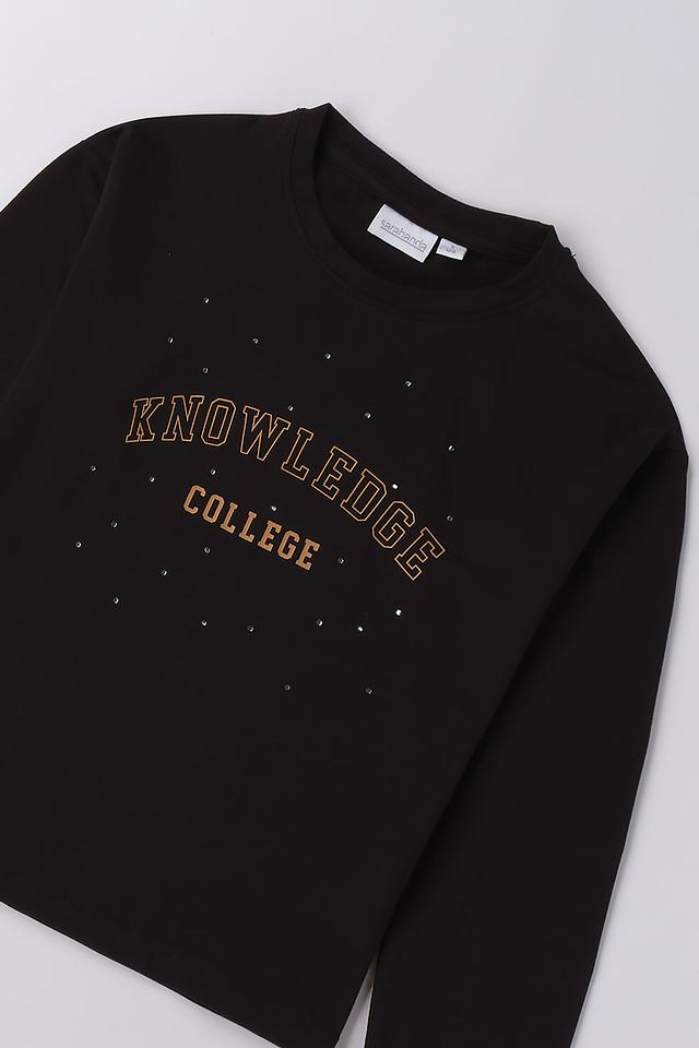 Джемпер Sarabanda чёрного цвета с надписью "KNOWLEDGE COLLEGE" – удобная и стильная модель для девочки. Изготовлен из мягкого хлопка с добавлением эластана для комфорта и свободы движений. Состав: хлопок 95%, эластан 5%
