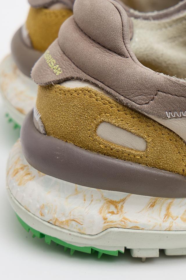 Верх кроссовок изготовлен из высококачественной кожи, что обеспечивает комфорт и долговечность. Вставки из горчичного текстиля добавляют оригинальности. Подкладка также выполнена из натуральной кожи, что позволяет ногам дышать и предотвращает появление неприятного запаха.