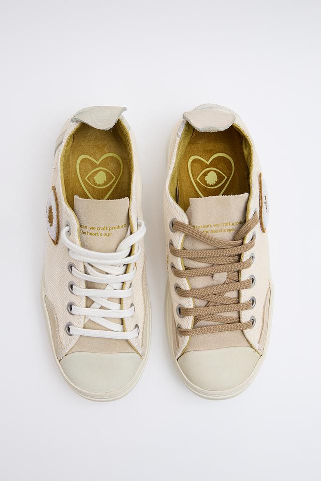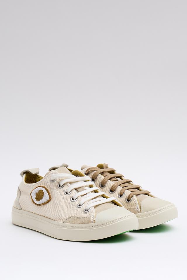 Бежевые сникерсы Satorisan с оригинальным дизайном в виде глаза — стильное и удобное решение для повседневной носки. Модель выполнена из текстиля и кожи, что обеспечивает комфорт и долговечность. Состав: Состав_низ резина 100%, хлопок 80%, Состав_подкладка кожа 50%, Состав_подкладка хлопок 50%, кожа 20%