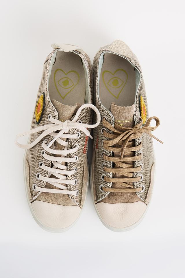 Мужские сникерсы Satorisan бежевого цвета с яркой нашивкой в виде глаза — оригинальная модель для повседневного образа. Выполнены из текстиля и кожи, отличаются удобством и стильным дизайном. Состав: Состав_низ резина 100%, хлопок 80%, Состав_подкладка кожа 50%, Состав_подкладка хлопок 50%, кожа 20%