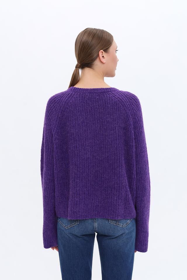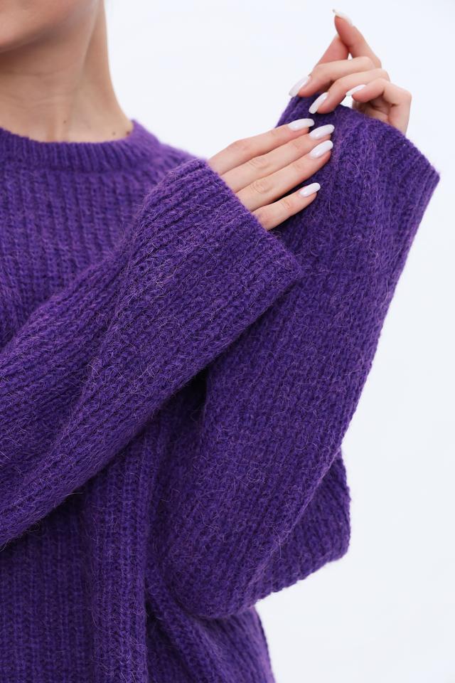 Фиолетовый пуловер SE Stenau из мягкой пряжи с выразитой текстурой. Модель свободного кроя с округлым вырезом горловины и рукавами с манжетами станет отличным дополнением к вашему гардеробу. Состав: полиакрил 40%, полиамид 30%, альпака 30%