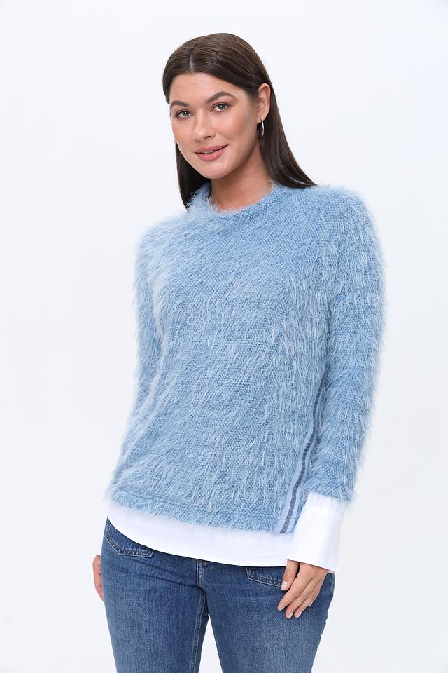 Женский пуловер SE Stenau голубого цвета выполнен из мягкой "пушистой" пряжи. Модель имеет округлый вырез горловины и свободный крой, идеально подходит для создания уютных образов. Состав: полиамид 60%, хлопок 28%, полиэстер 10%, эластан 2%