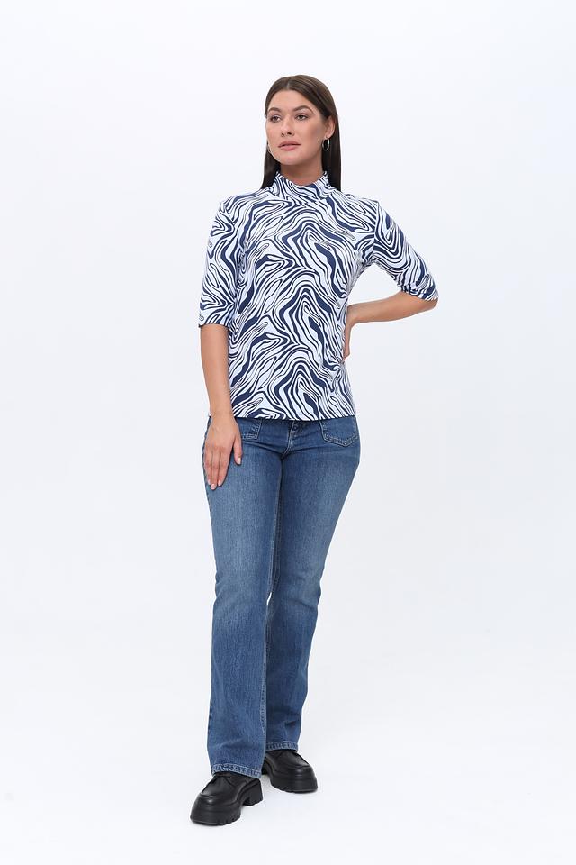 Водолазка имеет удобный крой, который подчеркивает фигуру, но не сковывает движения. Высокий воротник-стойка добавляет изысканности, а рукава 3/4 делают её универсальной для любого времени года.