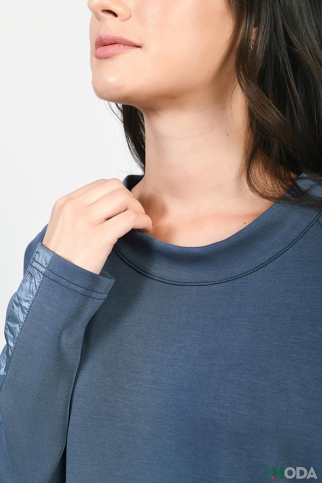 Стильный пуловер SE Stenau синего цвета с оригинальными вставками из плащевой ткани. Модель имеет свободный крой и круглый вырез горловины, что обеспечивает комфорт и удобство в носке. Состав: полиэстер 48%, модал 48%, эластан 4%