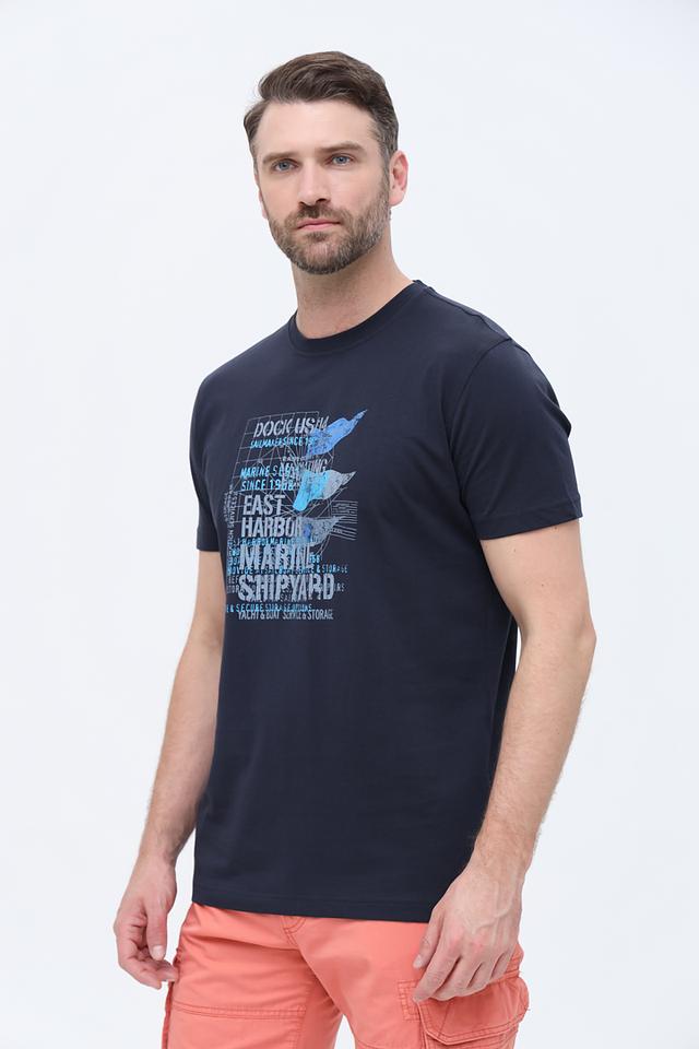 Синяя футболка Sea Barrier с оригинальным принтом в морской тематике. Изготовлена из 100% хлопка, обеспечивающего комфорт и воздухопроницаемость. Отличный выбор для повседневного образа. Состав: хлопок 100%