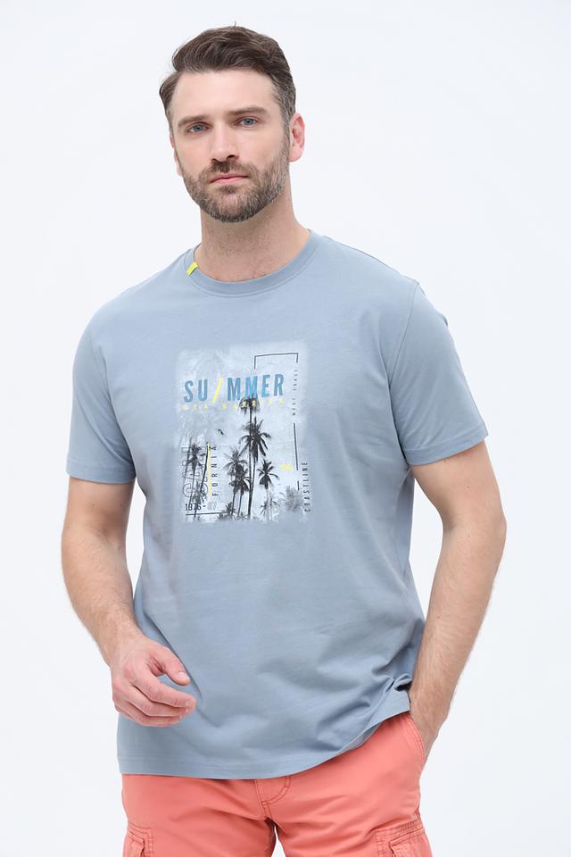 Голубая футболка Sea Barrier с ярким летним принтом. Изготовлена из 100% хлопка, обеспечивая комфорт и воздухопроницаемость. Отличный выбор для повседневного образа. Состав: хлопок 100%