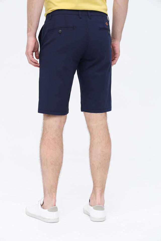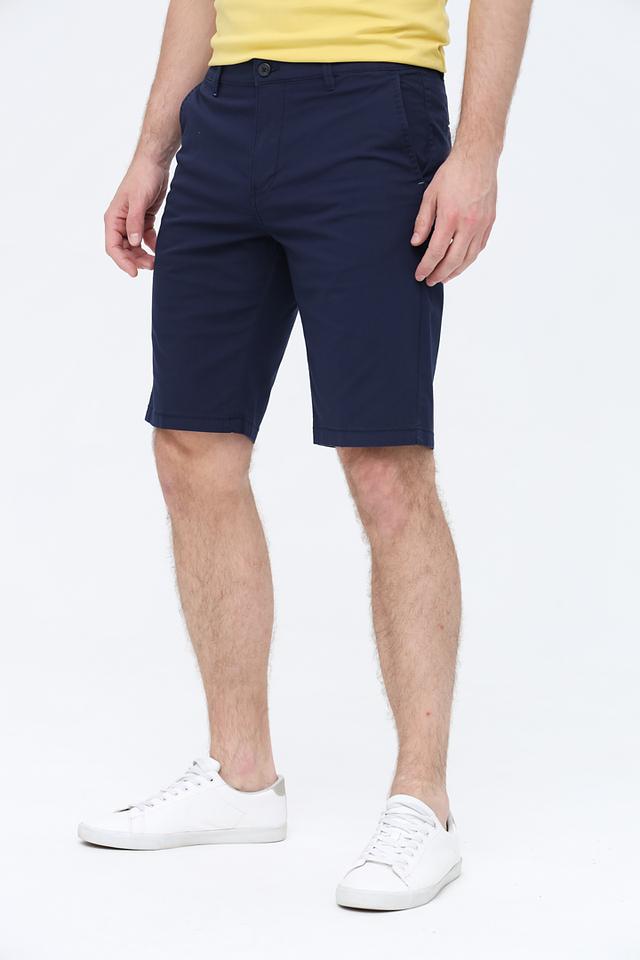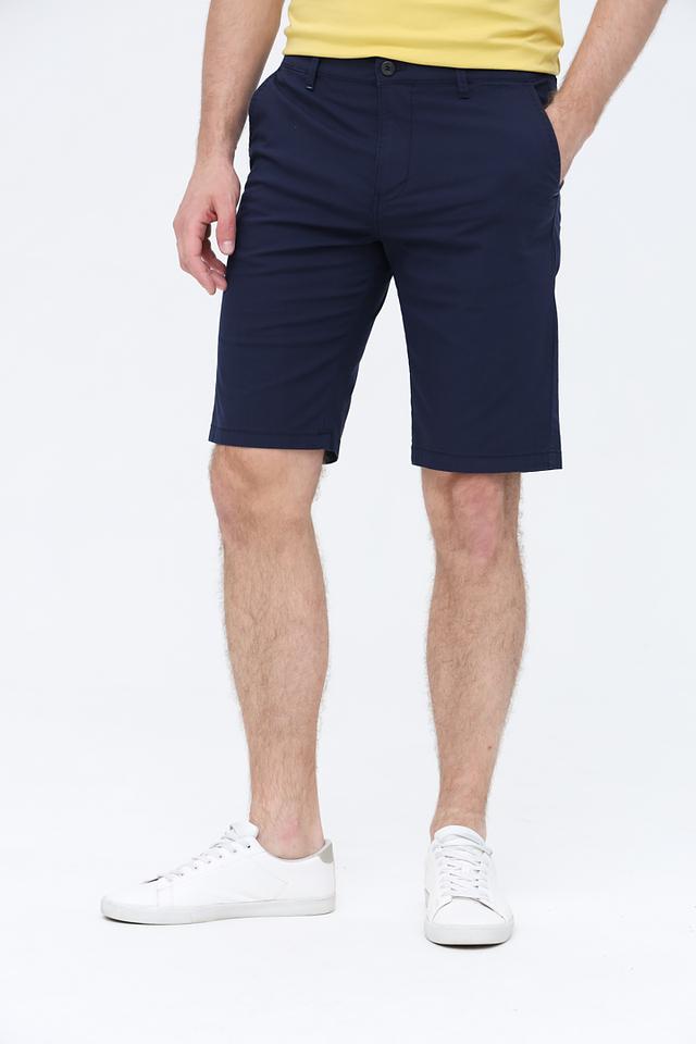 Шорты синего цвета, имеют классическую застежку на пуговицу и молнию. Сзашные карманы добавляют функциональности. Данная модель идеально подходит для создания повседневных образов. Шорты прекрасно сочетаются с футболками, поло и легкими рубашками.