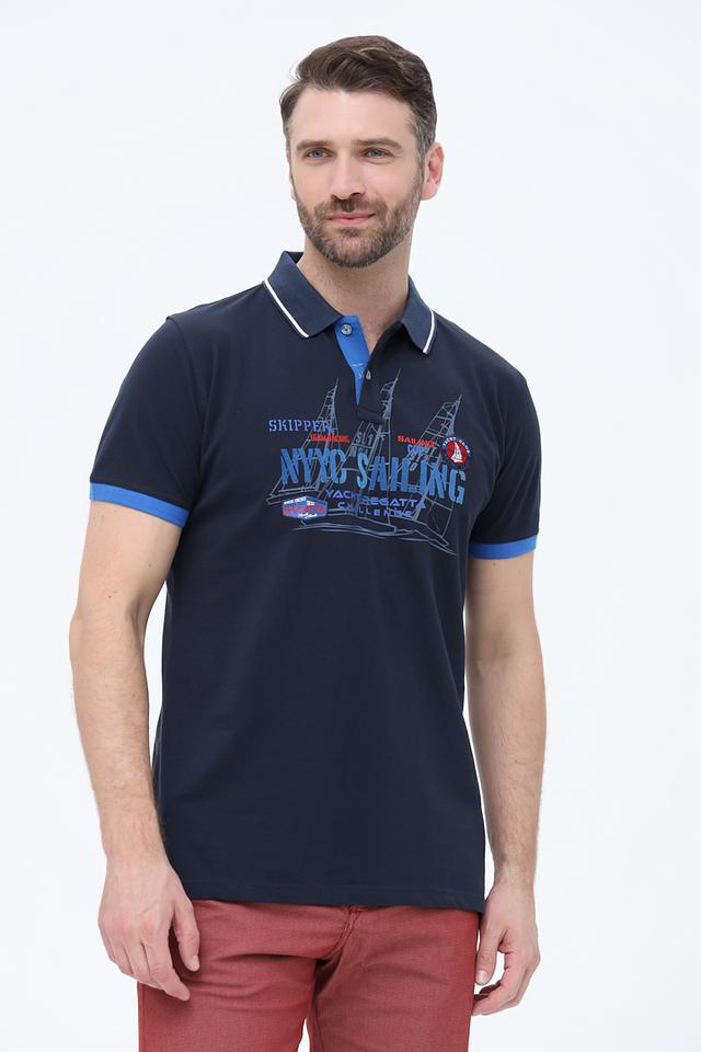 Мужское поло Sea Barrier тёмно-синего цвета с ярким морским принтом. Классический крой и 100% хлопковый состав обеспечивают комфорт и удобство в носке. Стильное поло станет отличным дополнением к вашему гардеробу. Состав: хлопок 100%