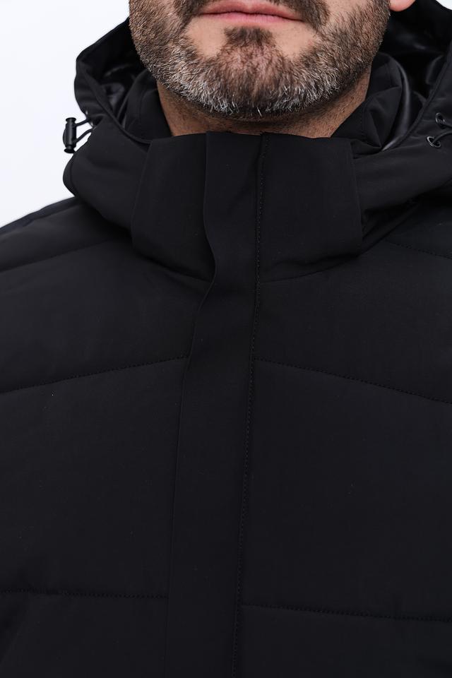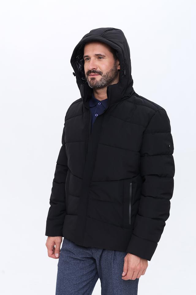 Куртка имеет стеганую текстуру, которая придает ей современный вид. Капюшон обеспечивает дополнительную защиту от непогоды, а воротник-стойка добавляет комфорта.