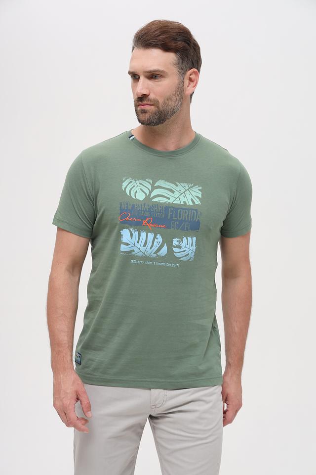 Мужская футболка Sea Barrier хаки украшена ярким принтом с тропическими мотивами и надписями. Изготовлена из 100% хлопка, обеспечивая комфорт и воздухопроницаемость в течение всего дня. Состав: хлопок 100%