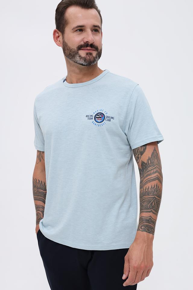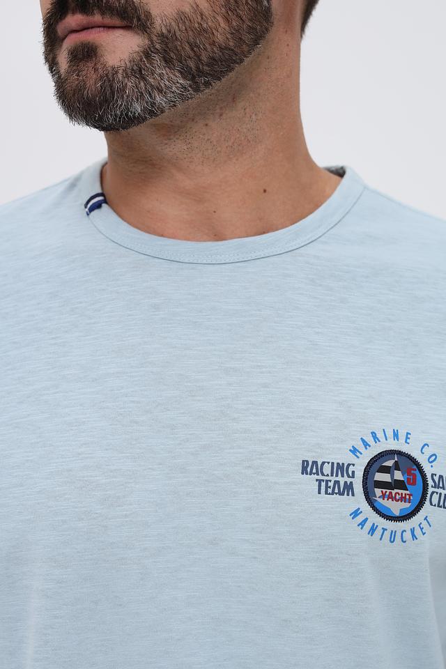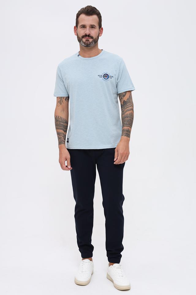 Голубая футболка Sea Barrier из 100% хлопка – это комфорт и стиль в повседневной носке. Классический крой и оригинальный принт с морской тематикой делают эту футболку отличным выбором для создания непринужденного образа. Состав: хлопок 100%