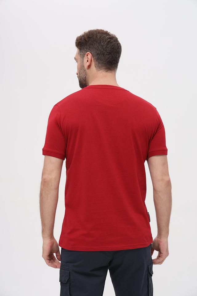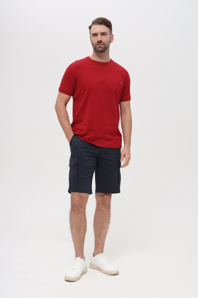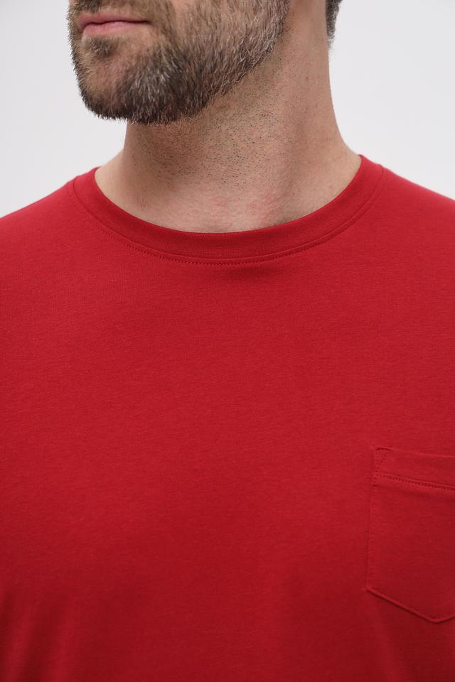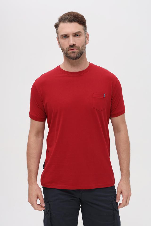 Модель выполнена в насыщенном бордовом цвете, который легко сочетается с различными элементами гардероба. Нагрудный карман добавляет функциональности и акцентирует внимание на дизайне. Округлый вырез горловины и короткие рукава делают футболку идеальным выбором для теплой погоды.