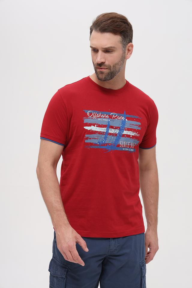 Мужская футболка Sea Barrier красного цвета с ярким принтом в морской тематике. Изготовлена из 100% хлопка, обеспечивающего комфорт и воздухопроницаемость. Отличный выбор для повседневного образа. Состав: хлопок 100%