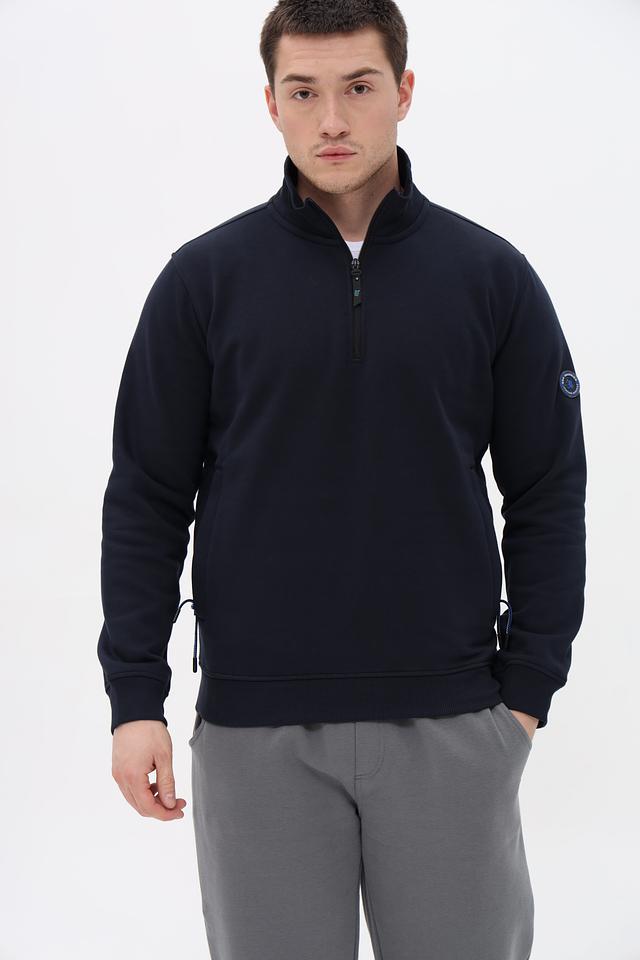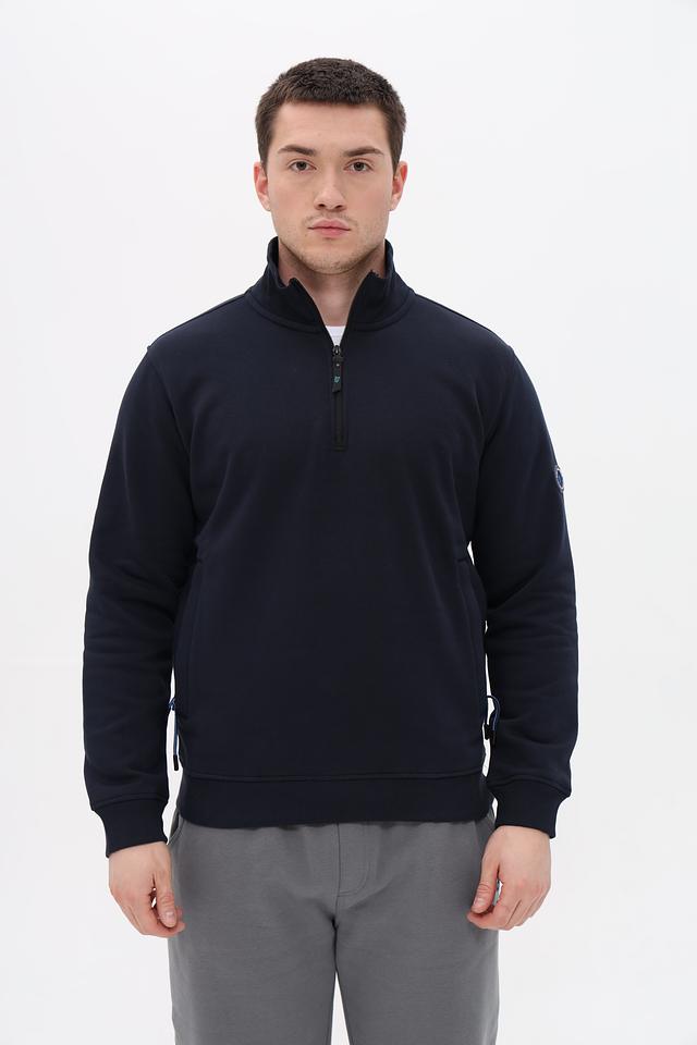 Мужской джемпер Sea Barrier темно-синего цвета с молнией на горловине. Изготовлен из мягкого и комфортного сочетания хлопка и полиэстера, обеспечивающего удобство в носке и практичность в уходе. Состав: хлопок 70%, полиэстер 30%