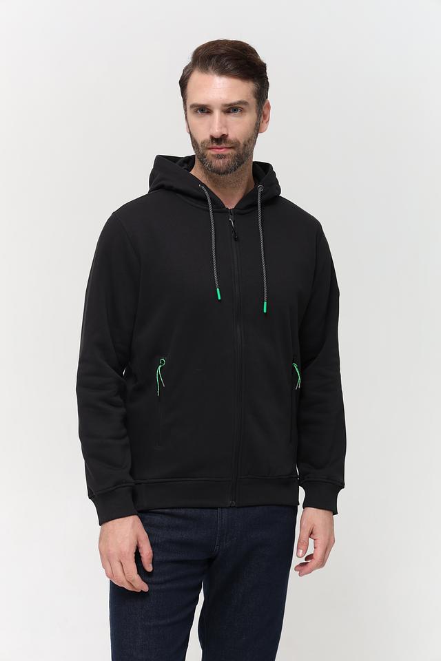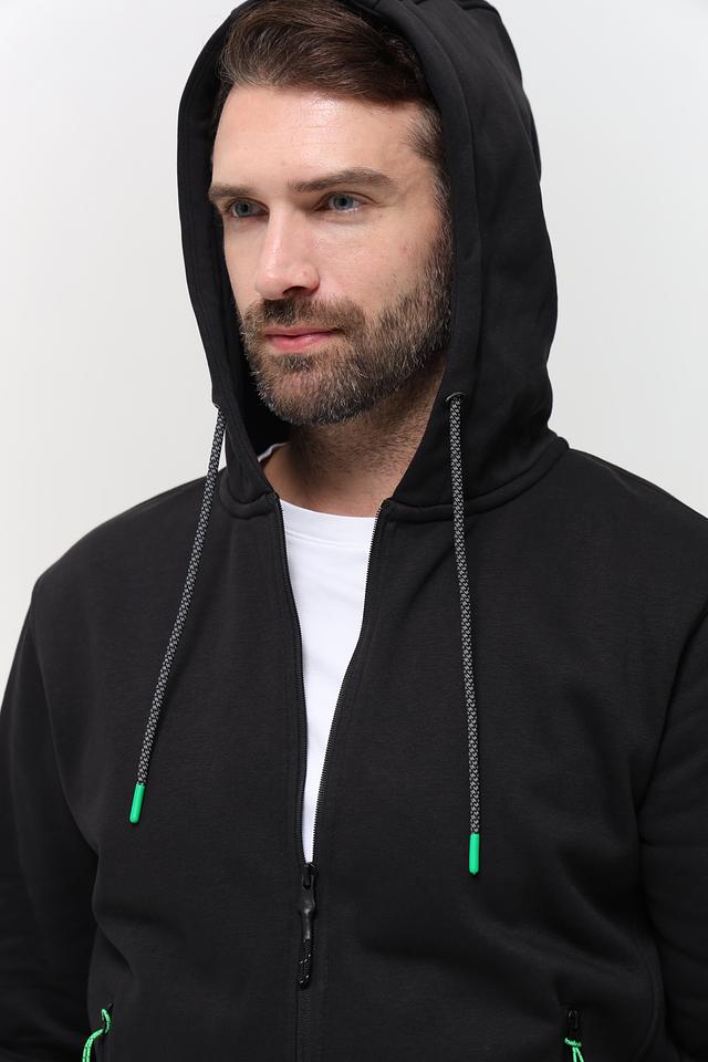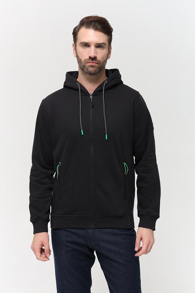 Чёрный кардиган Sea Barrier на молнии – стильная и удобная модель для повседневной носки. Изготовлен из хлопка с добавлением полиэстера, имеет капюшон и боковые карманы. Состав: хлопок 70%, полиэстер 30%