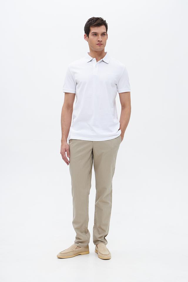 Застежка на пуговицу и молнию, а также наличие боковых и задних карманов делают брюки функциональными и удобными в использовании. Ткань имеет легкую текстуру, что придает брюкам более изысканный вид. Данная модель прекрасно сочетается с рубашками, футболками и поло, создавая разнообразные образы для любого случая.