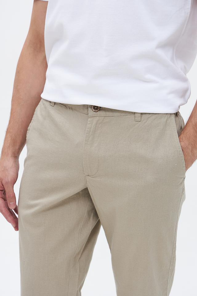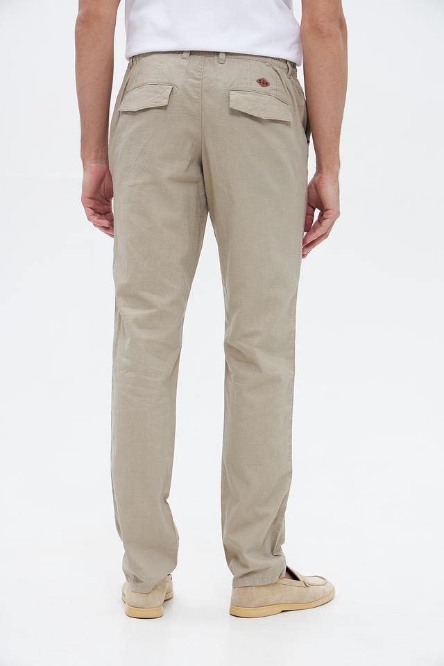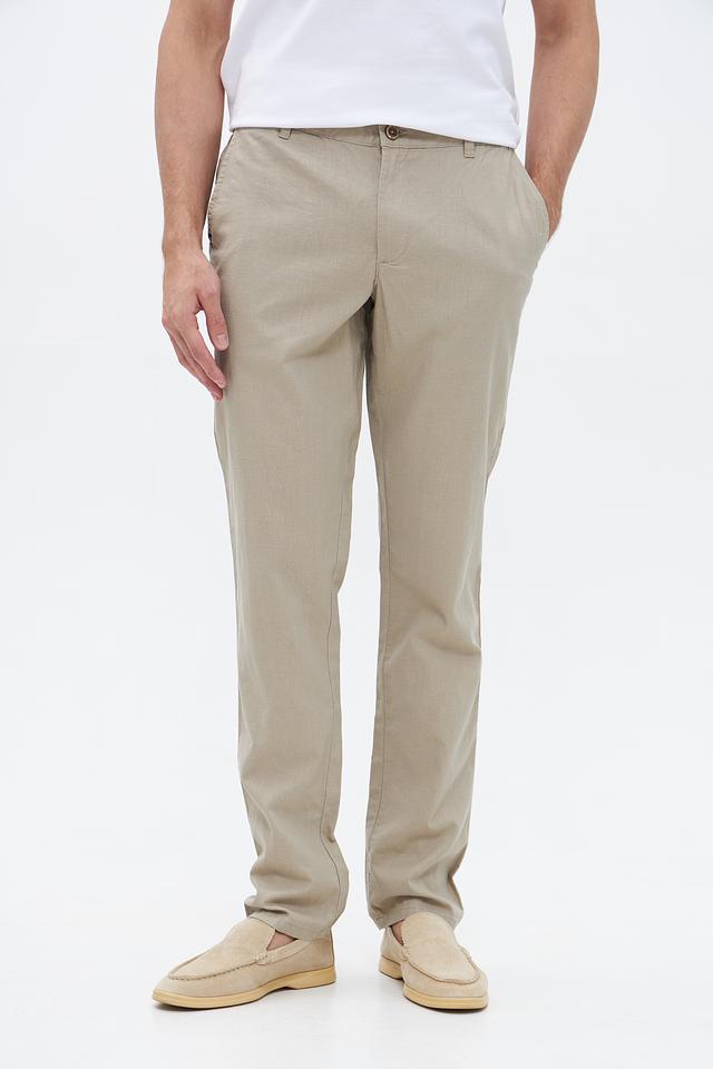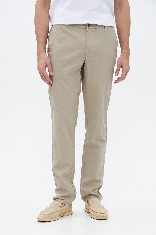 Брюки имеют классический прямой крой, который подходит для большинства типов фигуры. Изготовлены из высококачественного смесового материала, состоящего из 55% льна и 45% хлопка, что обеспечивает воздухопроницаемость и приятные тактильные ощущения.