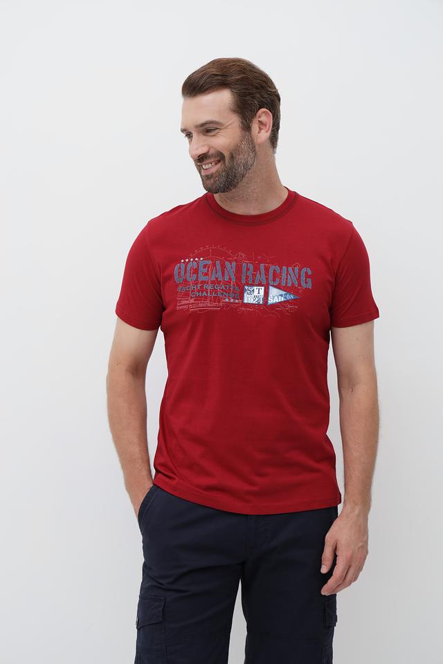 Мужская футболка Sea Barrier красного цвета с ярким принтом "Ocean Racing". Изготовлена из 100% хлопка, обеспечивающего комфорт и воздухопроницаемость. Отличный выбор для повседневной носки. Состав: хлопок 100%