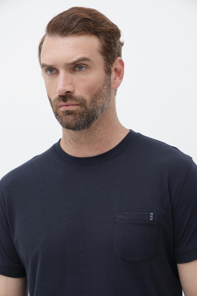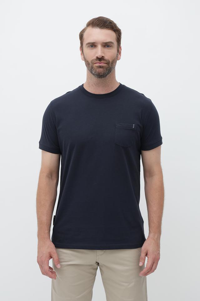 Мужская футболка Sea Barrier темно-синего цвета с коротким рукавом и накладным карманом. Изготовлена из 100% хлопка, обеспечивающего комфорт и воздухопроницаемость. Состав: хлопок 100%