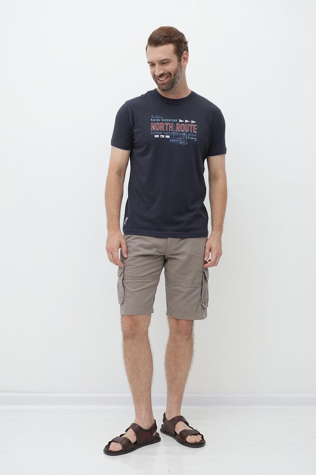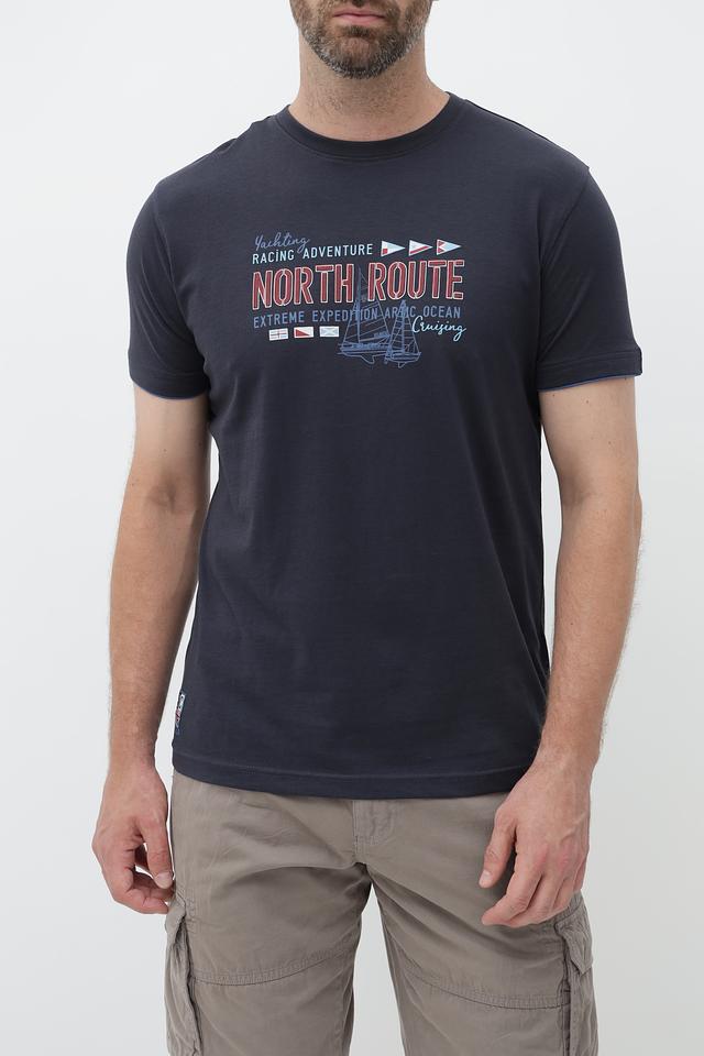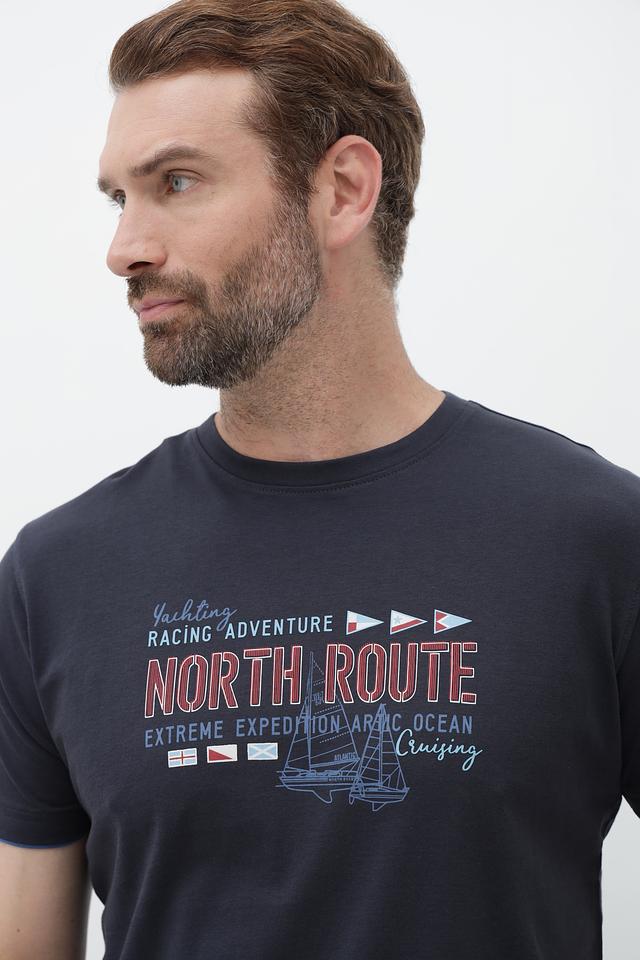 Мужская футболка Sea Barrier тёмно-синего цвета с ярким принтом на груди. Изготовлена из 100% хлопка, обеспечивающего комфорт и воздухопроницаемость. Состав: хлопок 100%
