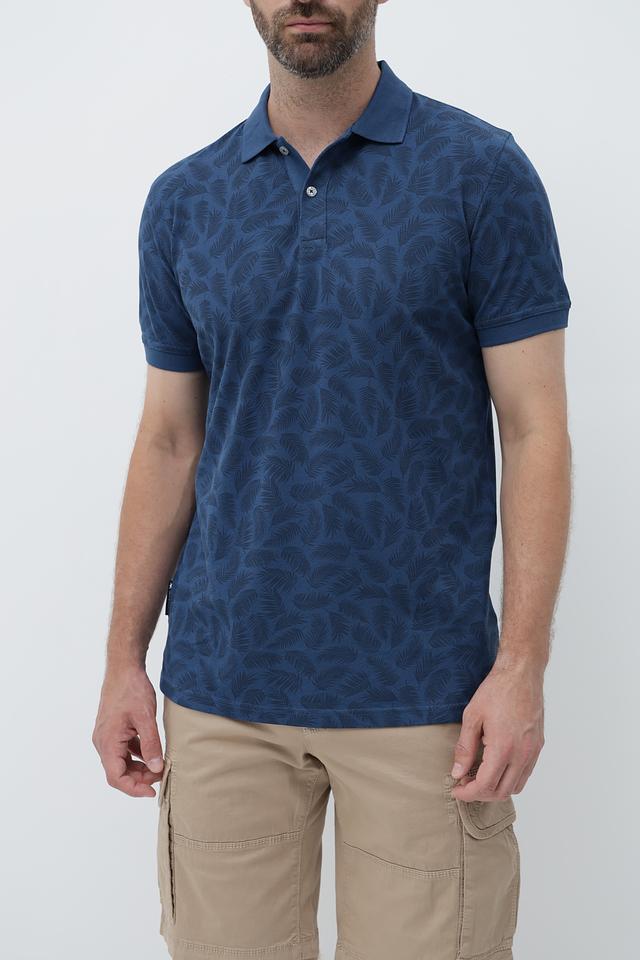 Мужское поло Sea Barrier синего цвета с оригинальным узором из листьев. Изготовлено из 100% хлопка, обеспечивающего комфорт и воздухопроницаемость. Стильный и удобный выбор для повседневной носки. Состав: хлопок 100%