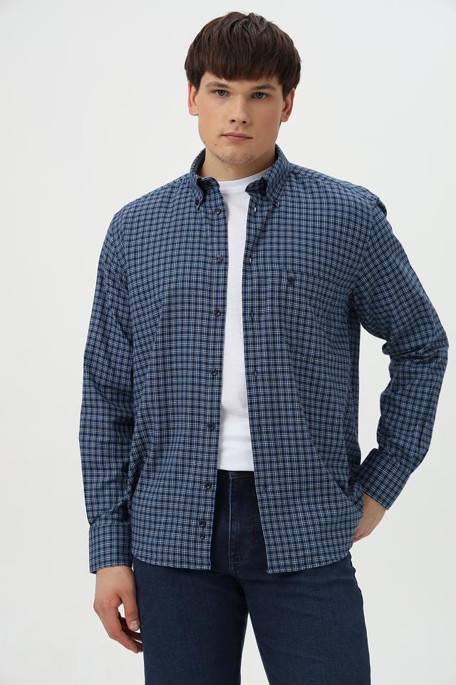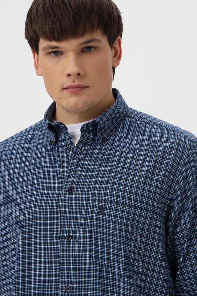 Рубашка выполнена в классическую синюю клетку, которая легко сочетается с различными стилями одежды. Прямой крой Regular fit обеспечивает свободу движений и подходит для большинства типов фигур.