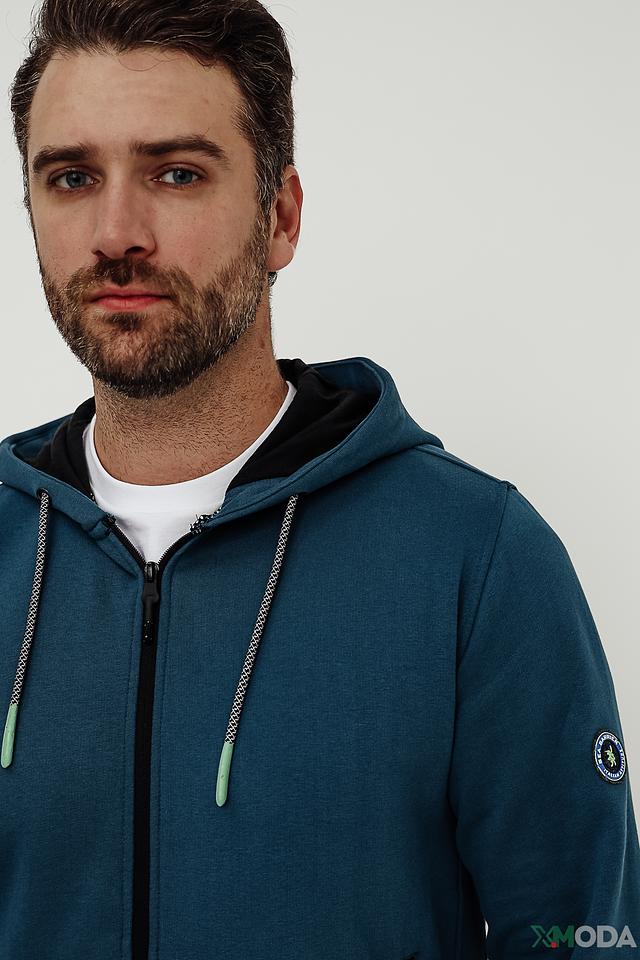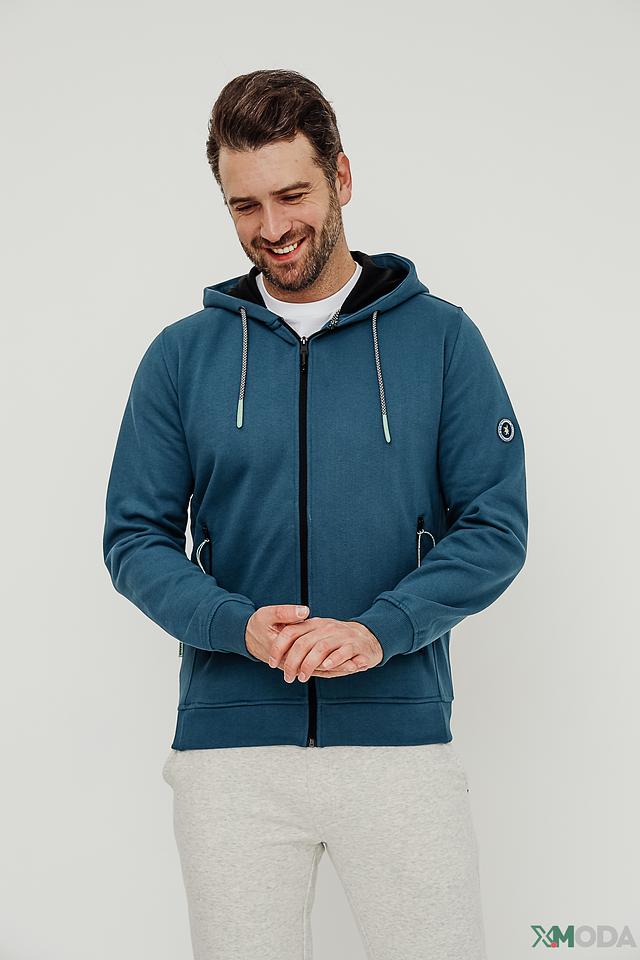 Мужской кардиган Sea Barrier бирюзового цвета на молнии с капюшоном. Модель выполнена из мягкого хлопка с добавлением полиэстера, что обеспечивает комфорт и практичность. Отличный выбор для повседневной носки. Состав: хлопок 70%, полиэстер 30%