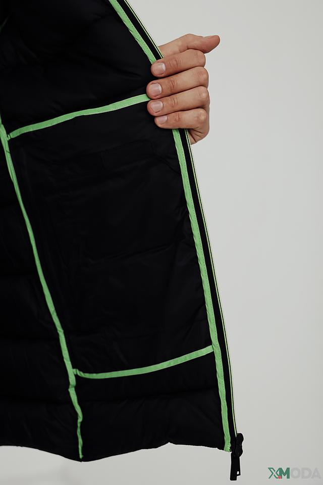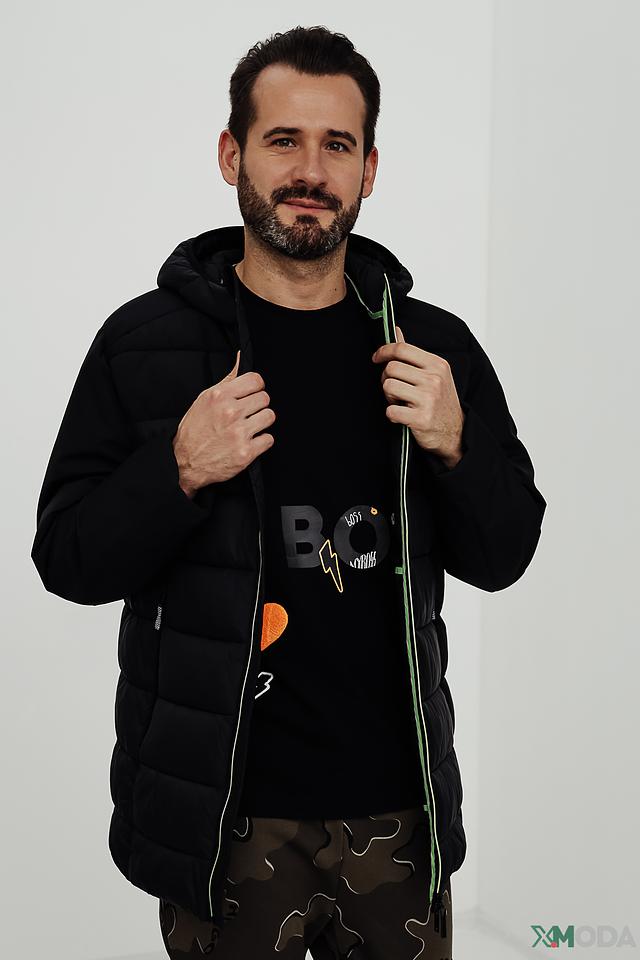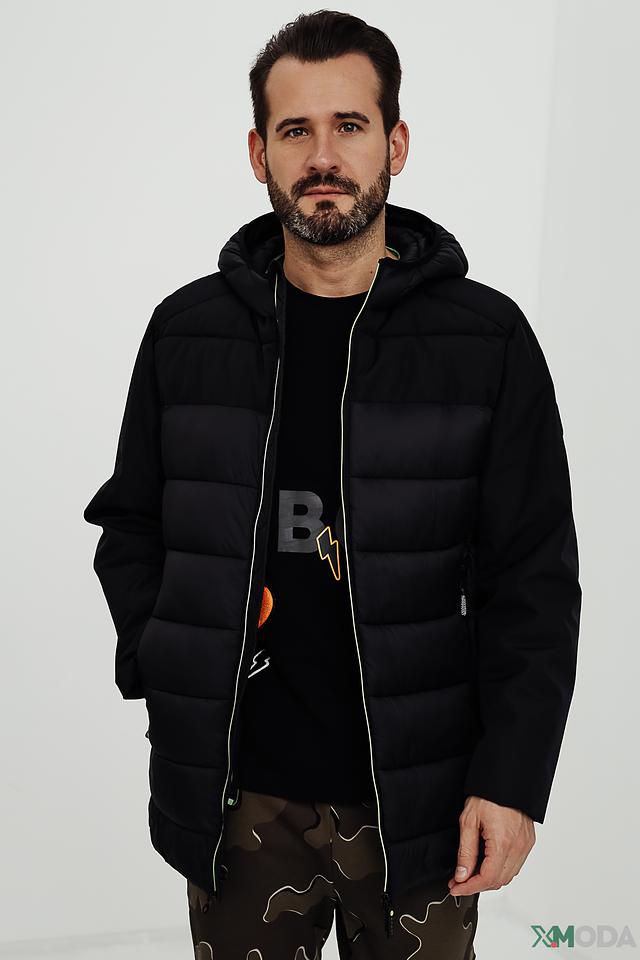 Куртка имеет стеганую фактуру на передней части и гладкую ткань на рукавах и плечах, что создает интересный контраст. Капюшон обеспечивает дополнительную защиту от ветра и холода. Застежка-молния позволяет легко регулировать степень теплоизоляции.
