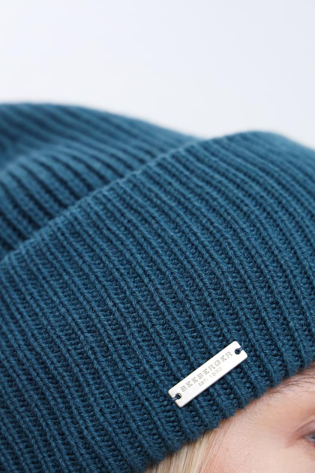 Шапка украшена небольшим металлическим логотипом бренда Seeberger спереди. Этот минималистичный элемент добавляет шапке изысканности и подчеркивает ее принадлежность к известному бренду. Универсальный бирюзовый цвет шапки легко сочетается с различными элементами гардероба.