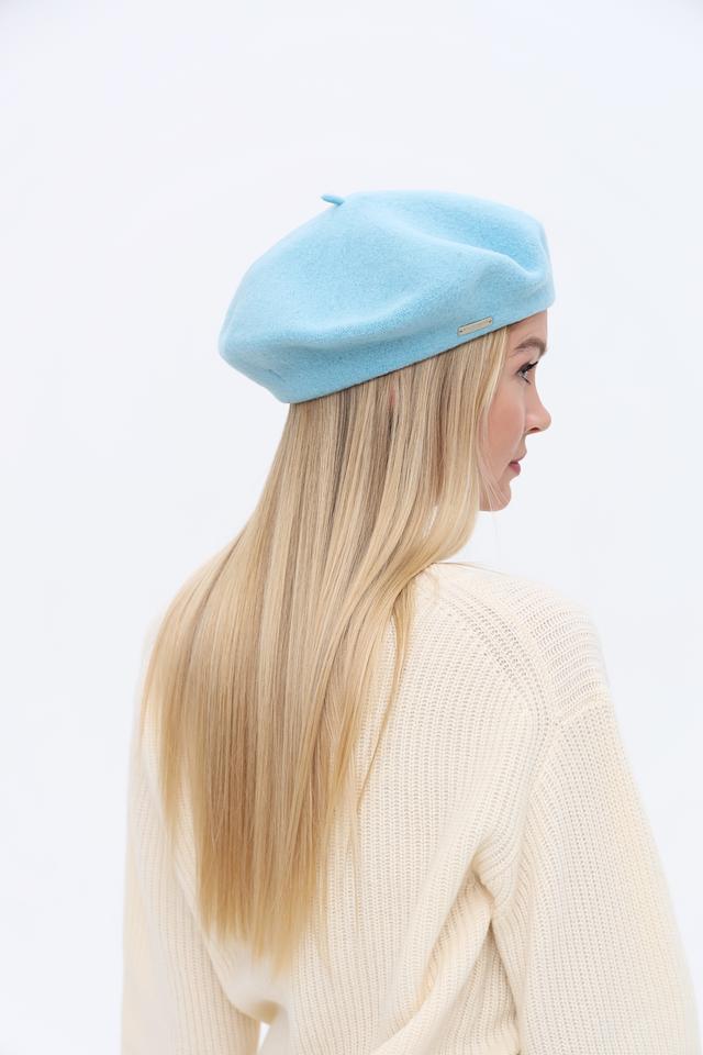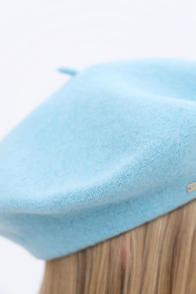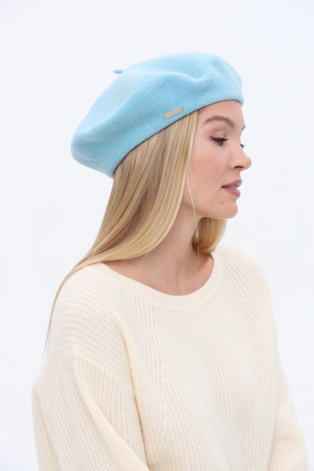 Берет имеет классическую форму и лаконичный дизайн, что делает его универсальным аксессуаром, подходящим к различным стилям одежды. Голубой цвет придает образу свежесть и легкость.