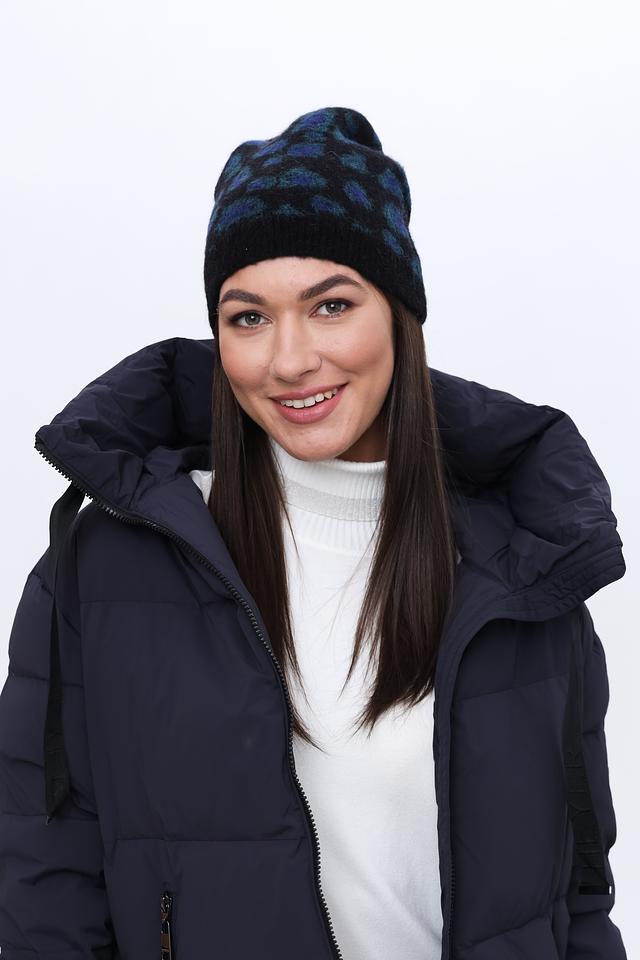Женская шапка Seeberger синего цвета с оригинальным леопардовым принтом станет стильным дополнением к вашему образу. Модель выполнена из мягкого и тёплого сочетания шерсти, мохера и полиамида, обеспечивая комфорт в холодную погоду. Состав: полиамид 49%, шерсть 35%, мохер 13%, эластан 3%