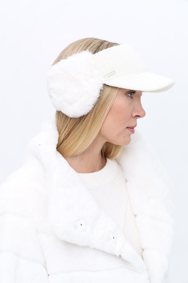 Белый цвет и отделка из искусственного меха придают аксессуару изысканный вид, который легко сочетается с зимней одеждой.