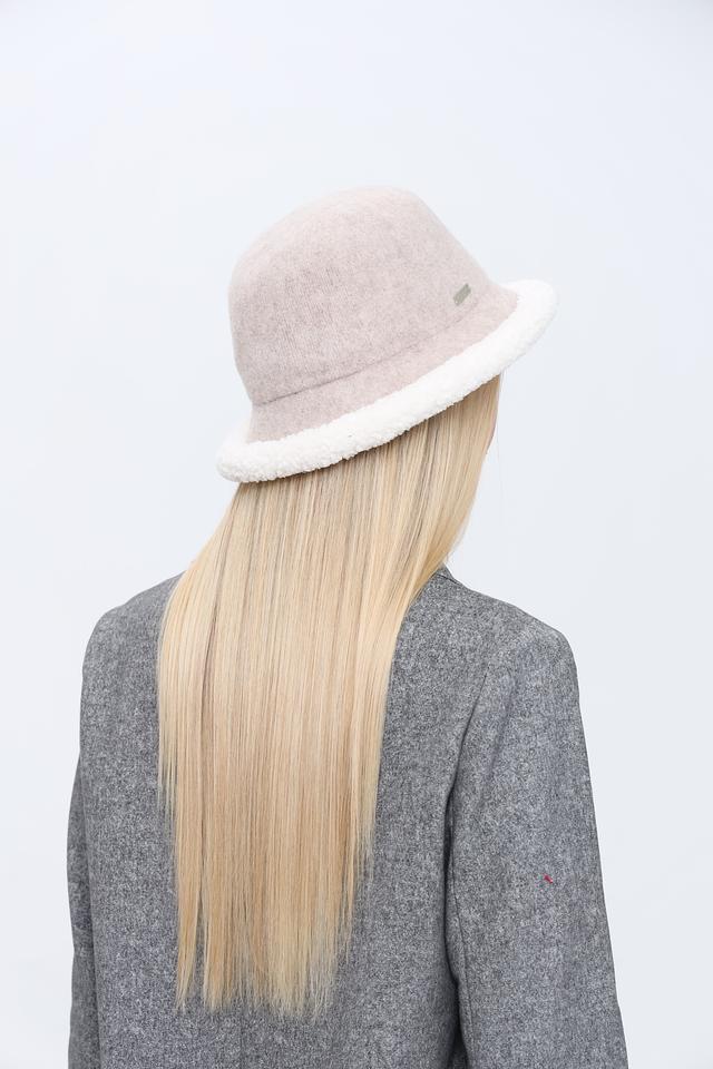 Дизайн шляпы отличается сочетанием бежевого цвета и мягкой отделки из искусственного меха по краю. Это придает ей особый шарм и делает ее привлекательной деталью образа. Логотип бренда Seeberger размещен на небольшой бирке, прикрепленной к шляпе.