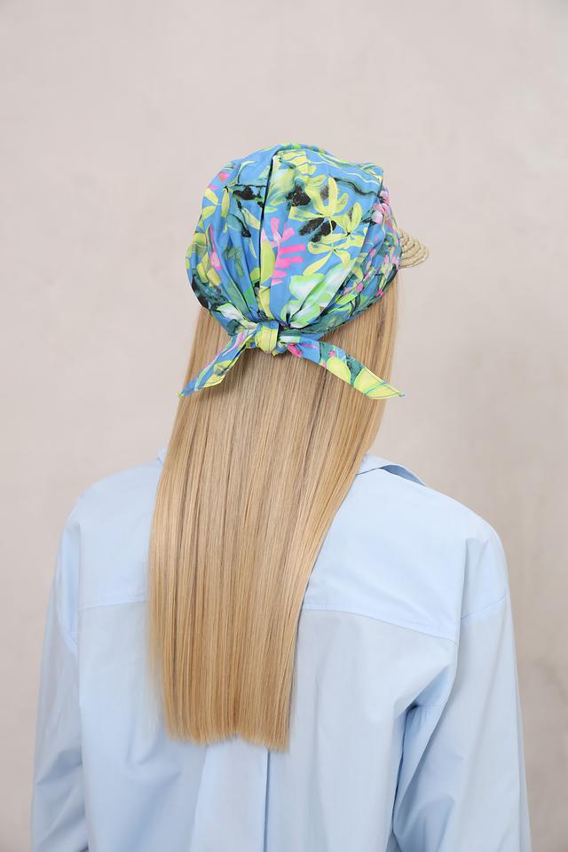 Яркий цветочный принт платка добавляет образу женственности и легкости. Кепка идеально подходит для повседневной носки, прогулок по городу или отдыха на природе. Состав: 100% хлопок.