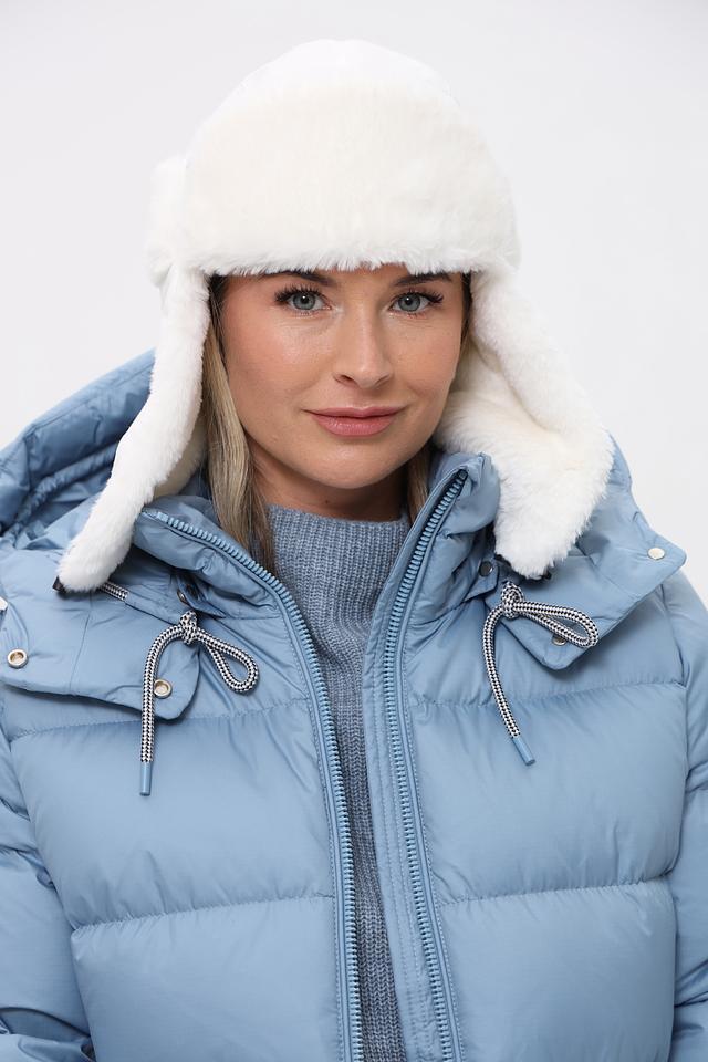 Шапка изготовлена из высококачественного полиэстера, что обеспечивает её долговечность и устойчивость к износу. Мягкий искусственный мех не только согревает в холодную погоду, но и придает шапке роскошный вид.