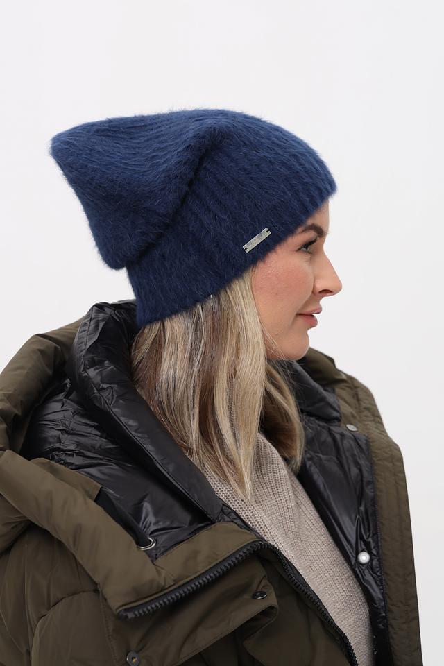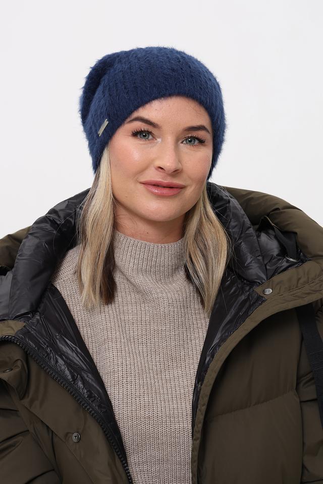 Синяя шапка от Seeberger, выполненная из мягкой ангоры с добавлением полиэстера и эластана. Модель имеет свободный крой и небольшой декоративный элемент с логотипом бренда. Состав: ангора 80%, полиэстер 18%, эластан 2%