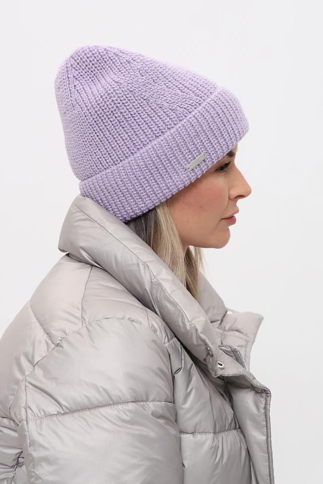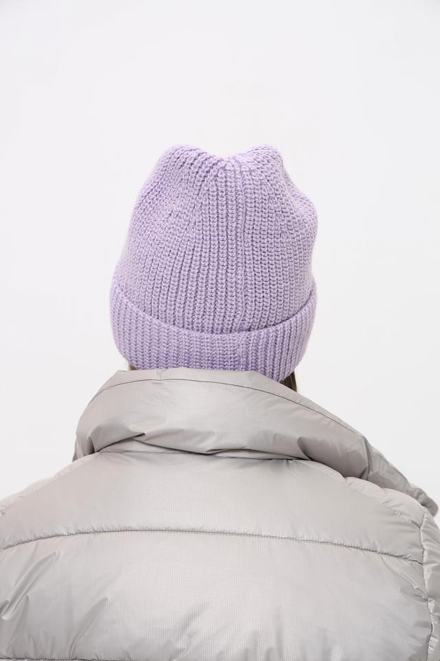 Шапка имеет классическую форму и лавандовый цвет, который легко сочетается с различными элементами одежды. Текстурное вязаное полотно придает шапке уютный вид. Небольшой металлизированный логотип бренда деликатно размещен спереди, добавляя изысканности.