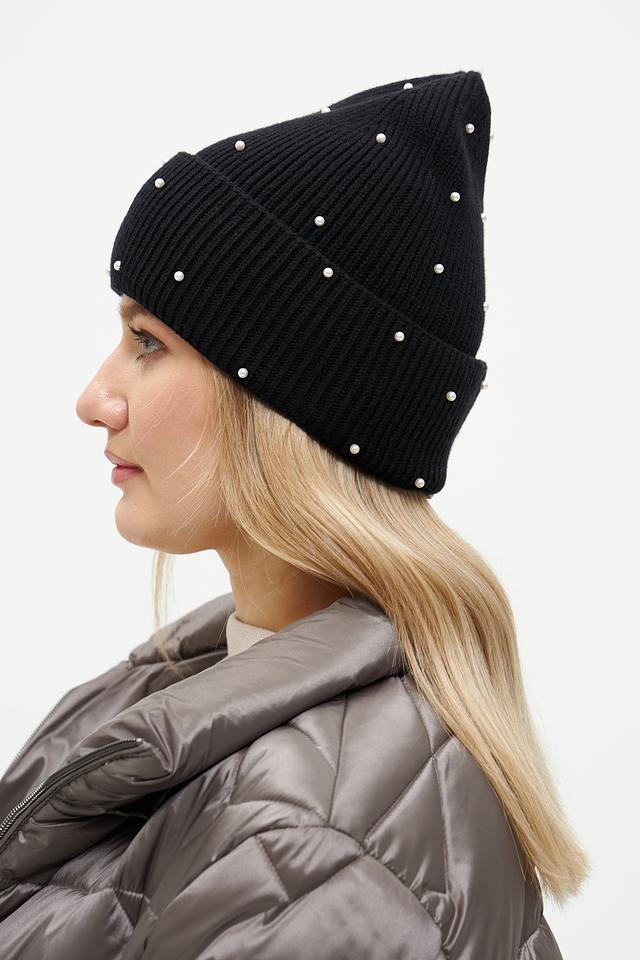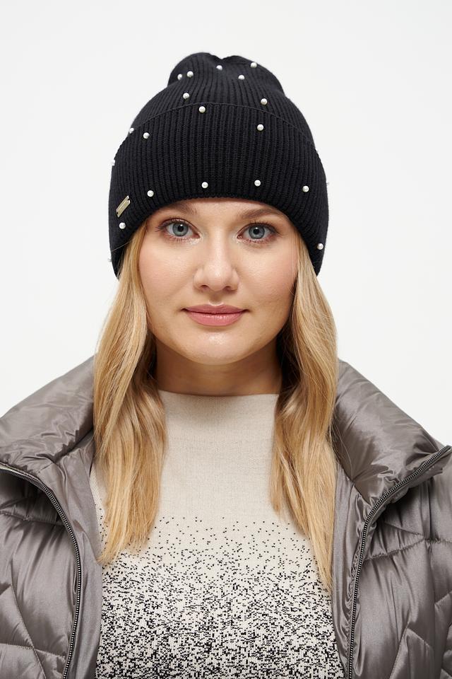 Особый шарм этой модели придаёт декор в виде жемчужных бусин, аккуратно расположенных по всей поверхности шапки. Жемчуг добавляет элегантности и изысканности, делая шапку подходящей как для повседневной носки, так и для особых случаев.