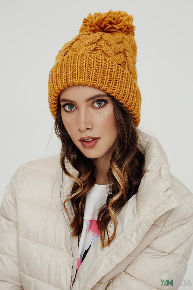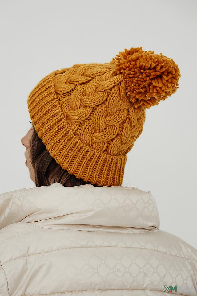 Шапка Seeberger горчичная с помпоном
