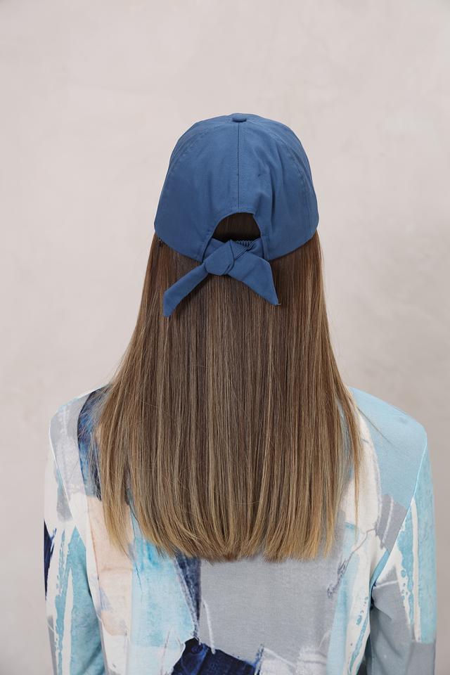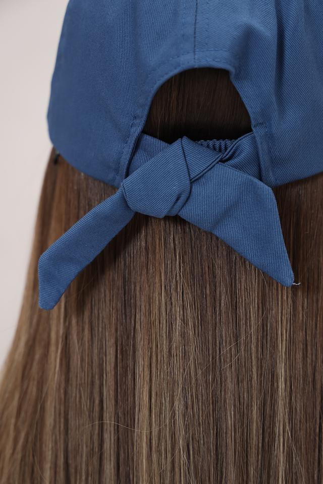 Бейсболка имеет классический крой и приятный голубой цвет, который легко сочетается с различными нарядами. Сзади предусмотрены завязки, позволяющие регулировать размер и обеспечивать идеальную посадку.