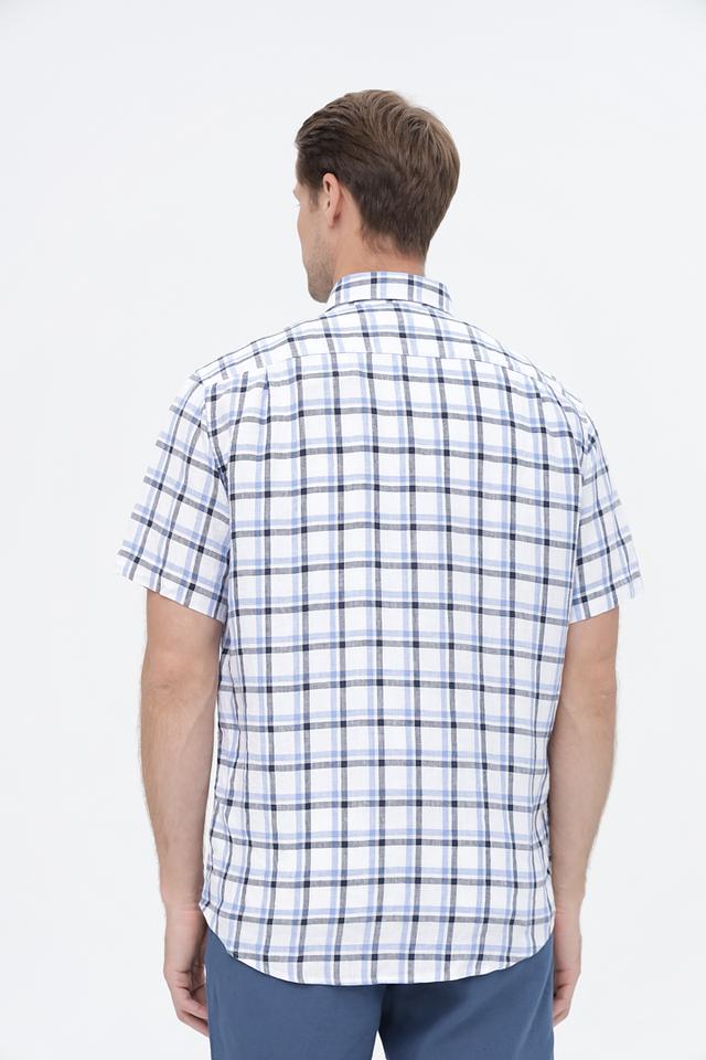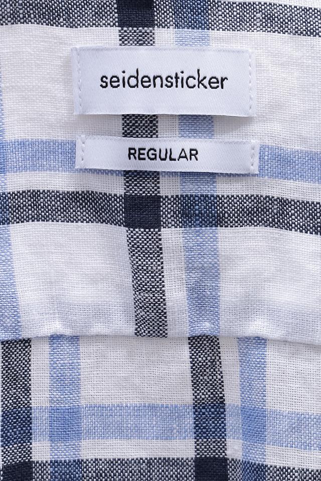 Мужская рубашка с коротким рукавом Seidensticker голубого цвета в классическую клетку. Изготовлена из 100% льна, обеспечивающего комфорт и воздухопроницаемость в жаркую погоду. Отличный выбор для создания стильного и непринужденного образа. Состав: лен 100%