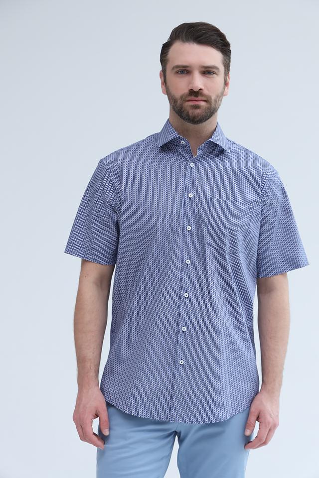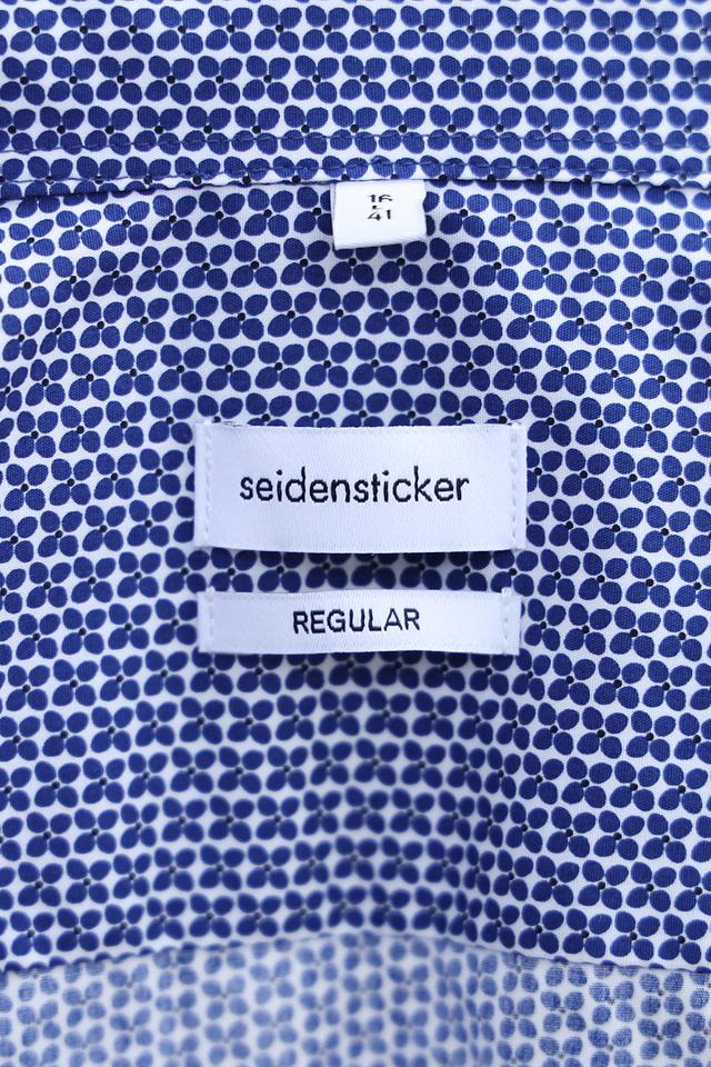 Мужская рубашка короткий рукав Seidensticker синего цвета с мелким принтом в горошек. Классический крой Regular обеспечивает комфортную посадку, а 100% хлопок – приятные ощущения при носке. Состав: хлопок 100%