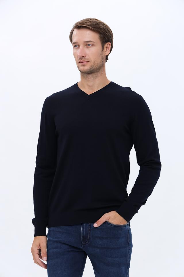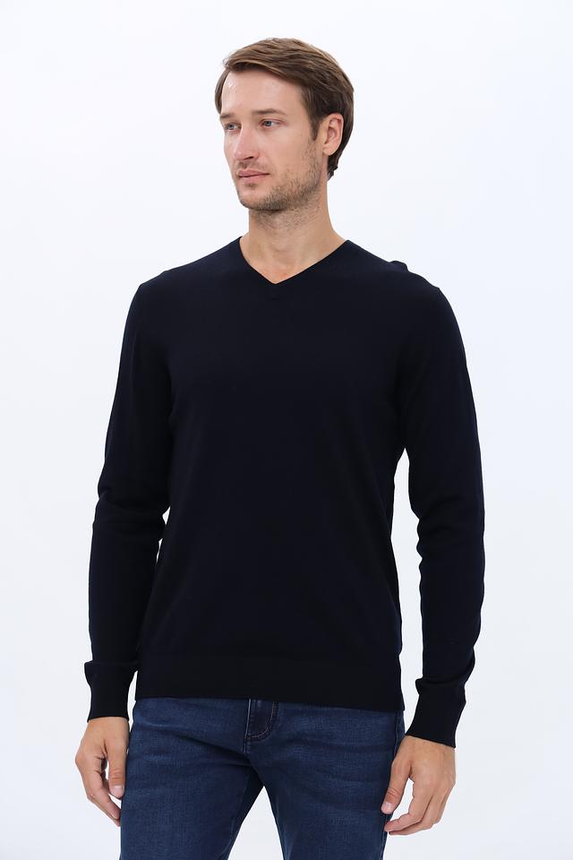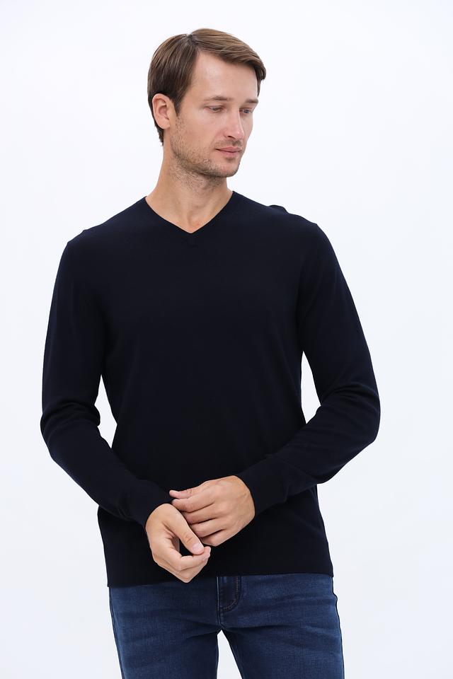 Мужской джемпер Seidensticker тёмно-синего цвета с V-образным вырезом. Классический пуловер из 100% шерсти обеспечит комфорт и тепло в холодное время года. Состав: шерсть 100%