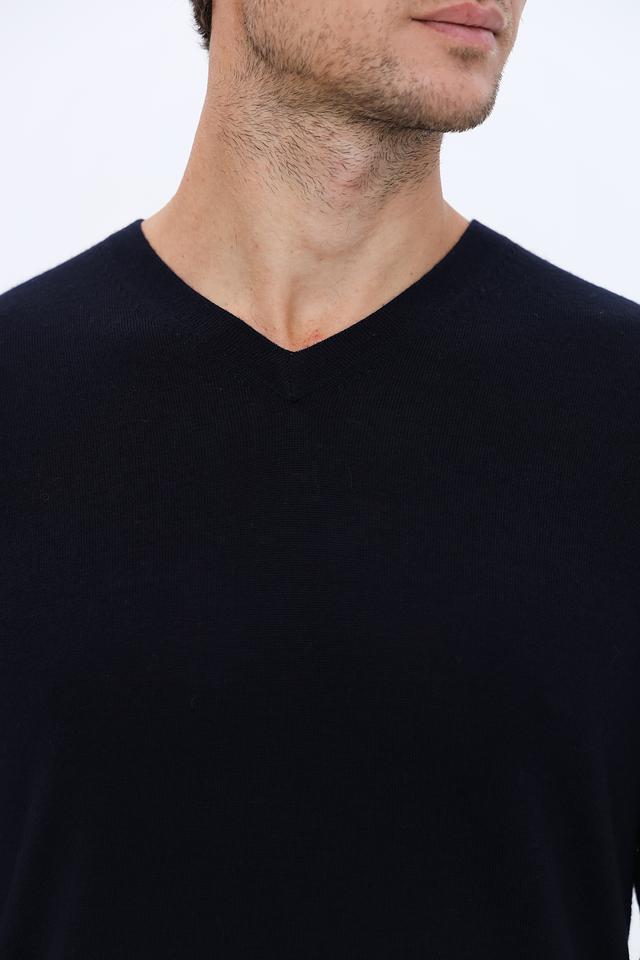 Джемпер имеет V-образный вырез, который придаёт ему элегантный и современный вид. Изготовлен из высококачественной 100% шерсти, что обеспечивает мягкость, тепло и комфорт при носке. Текстура шерсти приятна к телу и не вызывает раздражения.