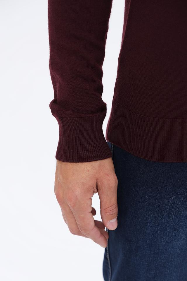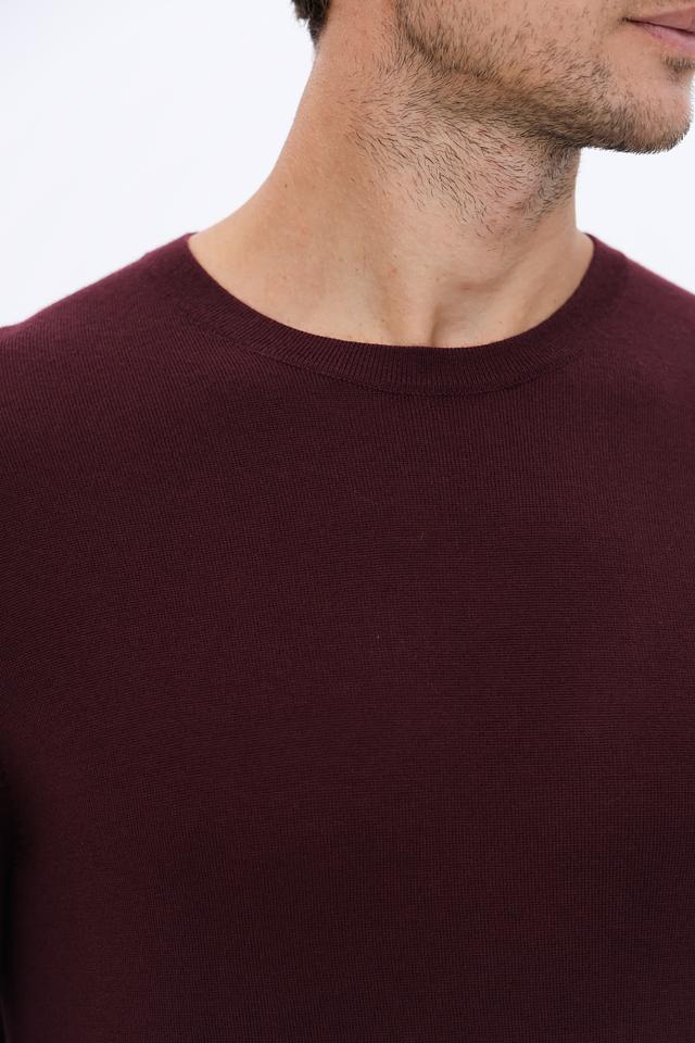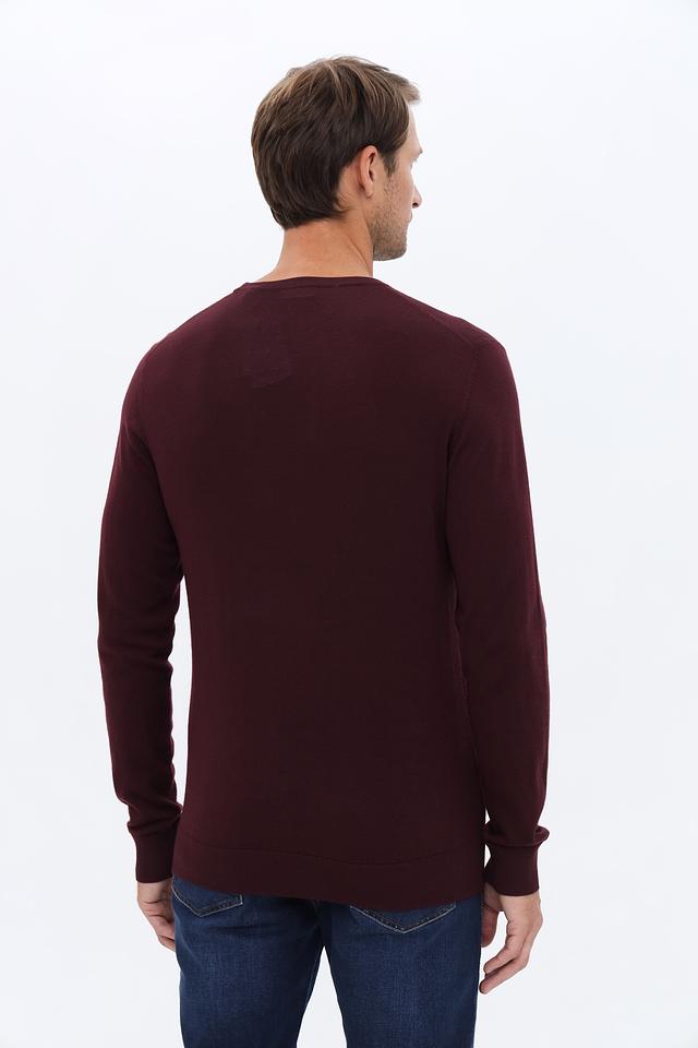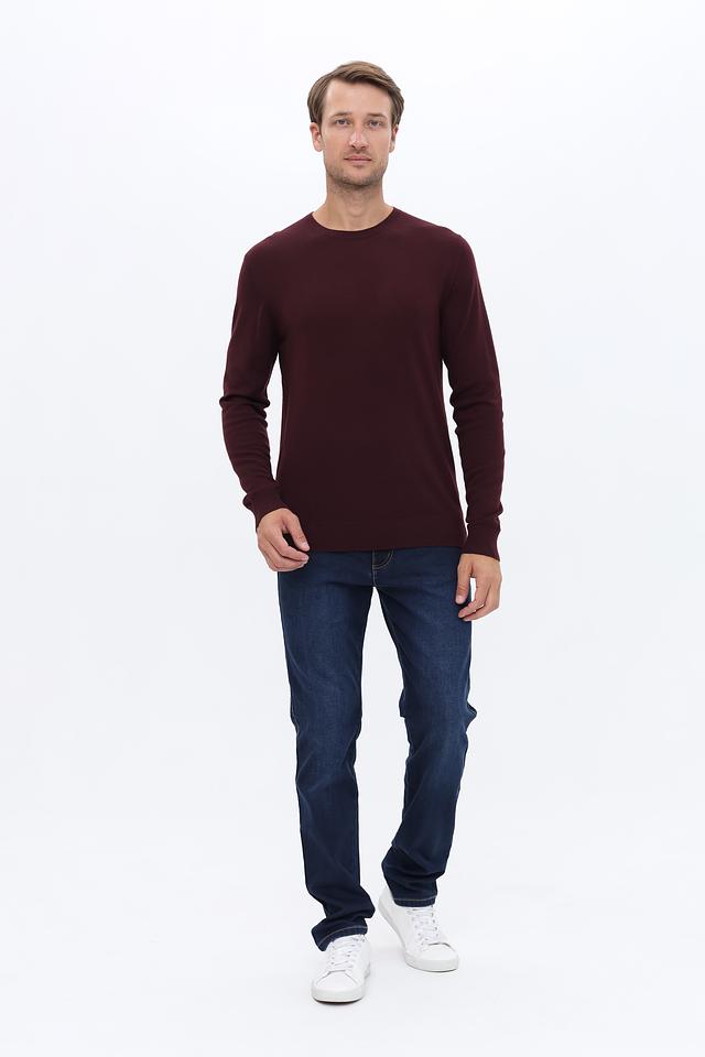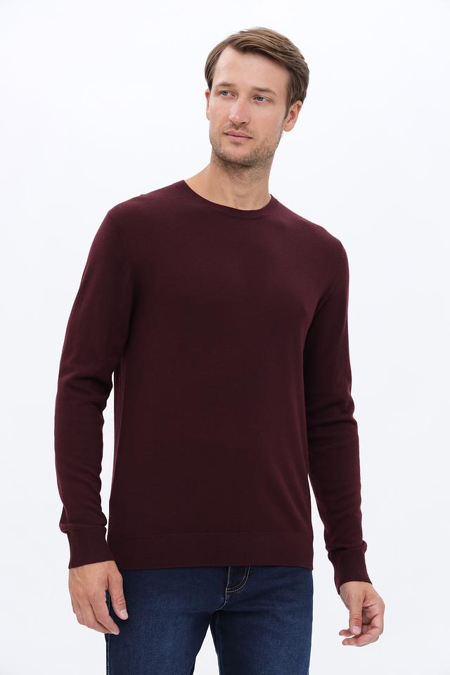 Джемпер имеет классический крой с круглым вырезом горловины и длинными рукавами. Бордовый цвет придает изделию элегантность и универсальность, позволяя легко сочетать его с различными элементами гардероба.