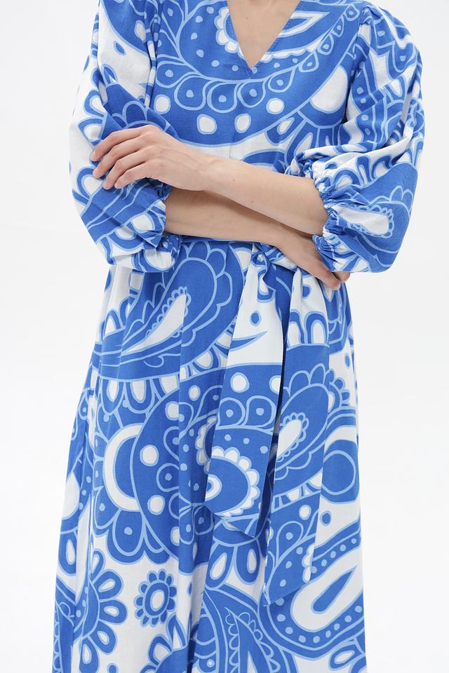 Голубое платье от Seidensticker с ярким принтом пейсли. Изготовлено из натурального хлопка с добавлением льна, обеспечивающего легкость и комфорт. Идеальный выбор для создания стильного и женственного образа. Состав: хлопок 65%, лен 35%