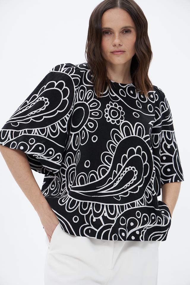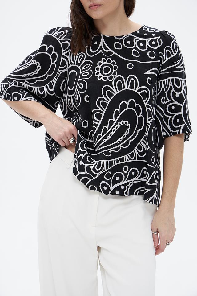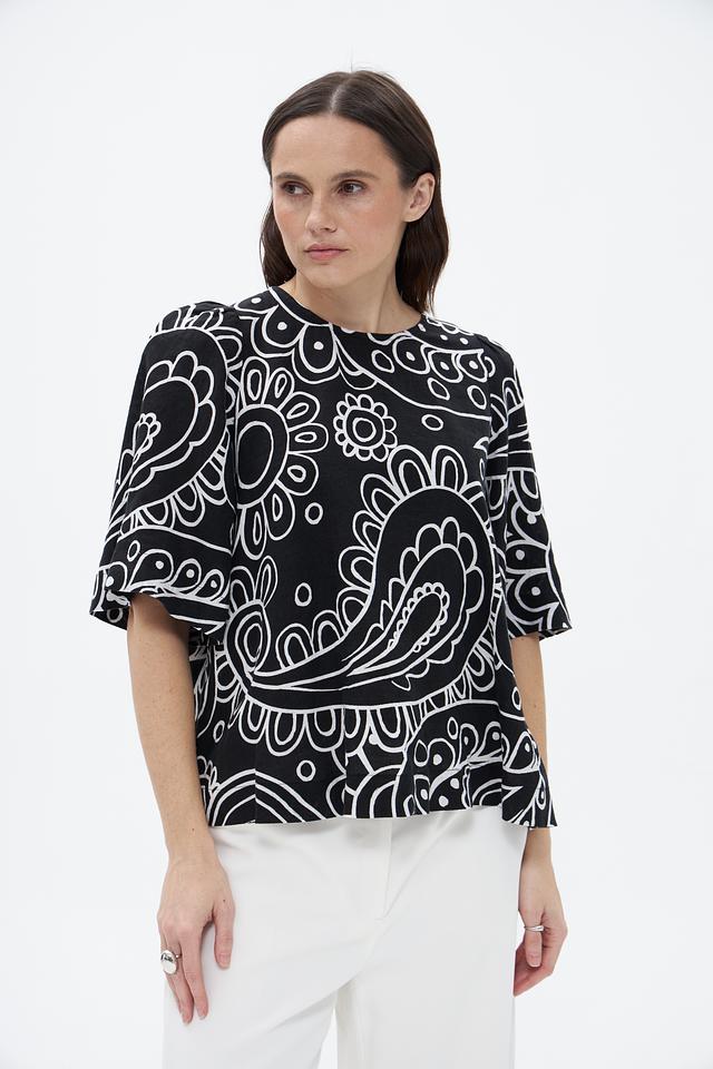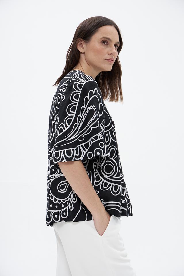 Блузка Seidensticker чёрного цвета с оригинальным геометрическим принтом. Изготовлена из 100% льна, обеспечивающего комфорт и воздухопроницаемость. Состав: лен 100%