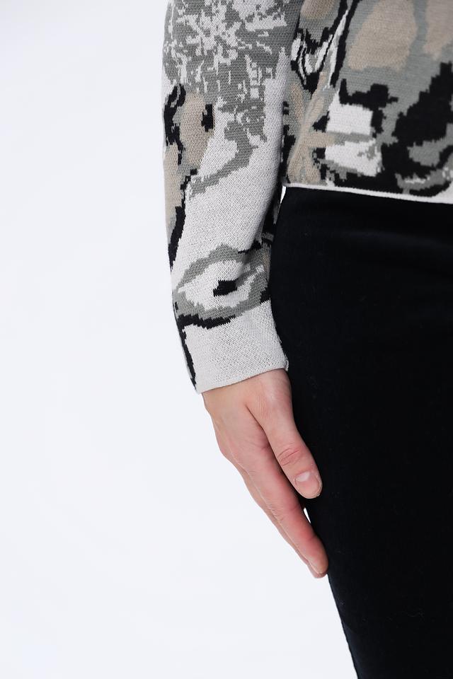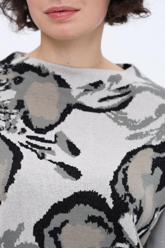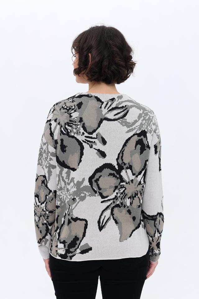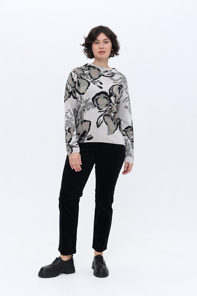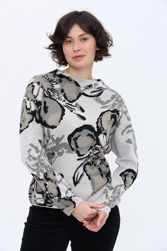 Этот пуловер от Monari – идеальный выбор для создания уютного и стильного образа. Выполненный в светло-сером цвете, он украшен крупным цветочным принтом, выполненным в оттенках серого и чёрного.